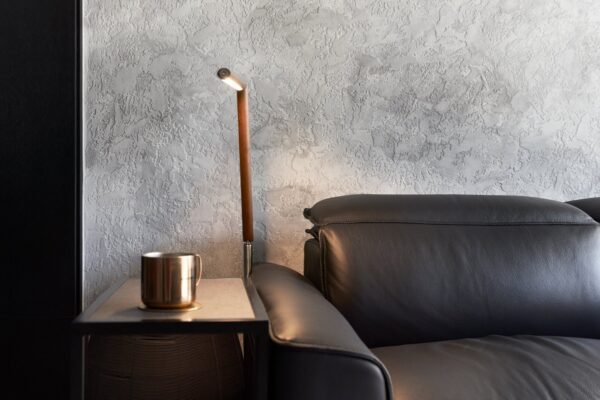The PCI Toned Travertino finish for this grungy luxe living space.